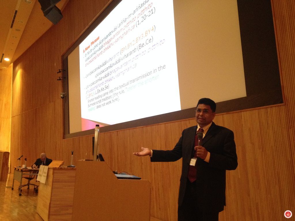 At the international symposium hosted at Fukutake Hall, Interfaculty Initiative in Information Studies, University of Tokyo, Professor G. Somaratne delivered a presentation on palm-leaf manuscripts from Theravada countries, focusing on the "New Project of Compiling Pāli Canonical Texts."