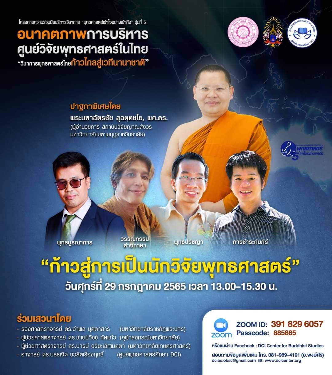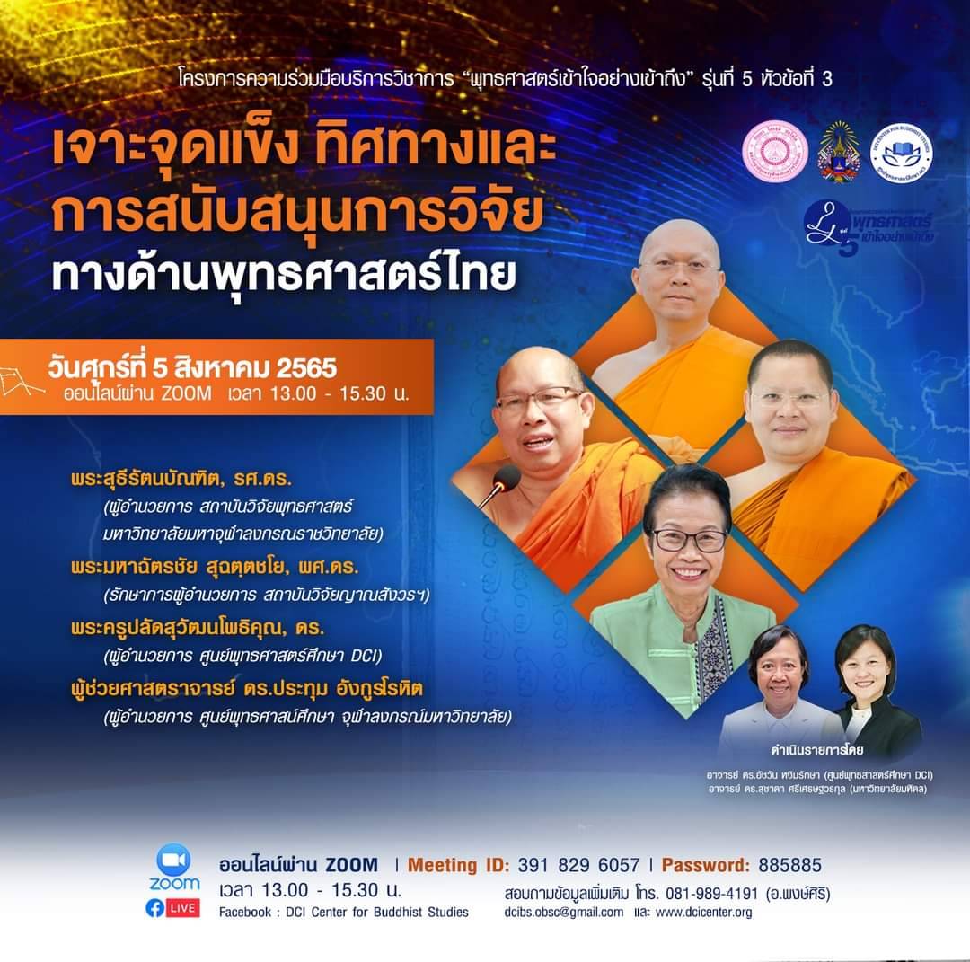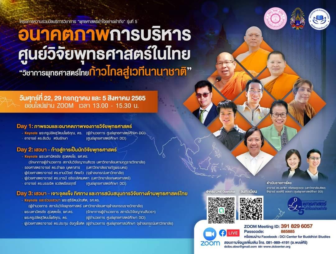 The DCI Center for Buddhist Studies and the Yanasangvorn Research Institute at Mahamakut Buddhist University joined hands to present an online seminar titled "The Administration of Research Centers for Buddhist Studies in Thailand." This seminar spanned three dates, July 22, July 29, and August 5, and featured discussions on three key themes: