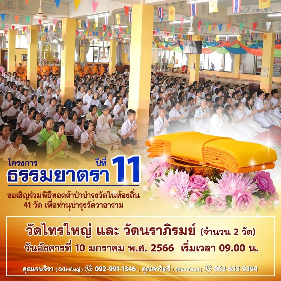 DTP staff members organized a robe offering ceremony at Wat Sai Yai in Sai Noi District, Nonthaburi Province as part of the 11th Dhammayatra Project. This annual event saw the participation of thousands of Buddhist monks during the Dhammayatra procession, which took place from January 2nd to January 31st.