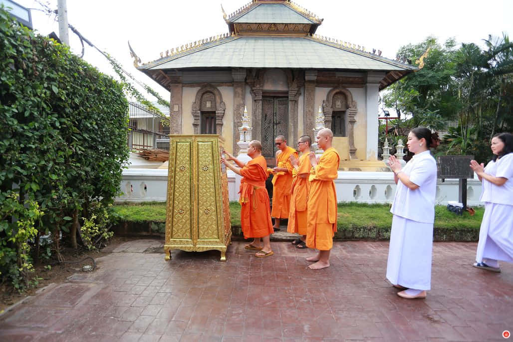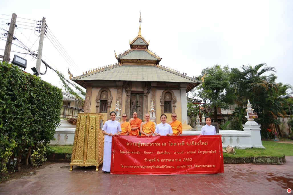 Representatives from DTP embarked on a journey to offer eight palm-leaf manuscript cabinets in the provinces of Lamphun and Chiang Mai. On March 5, the first two cabinets were presented to Wat Sitthi Song Tham and Wat Pratu Pa in Lamphun Province. From March 6 to 8, the remaining cabinets were offered to six temples in Chiang Mai, including Wat Chedi Luang, Wat Methang, Wat Nantharam, Wat Saen Fang, Wat Phra Singh, and Wat Sitthi Songtham.