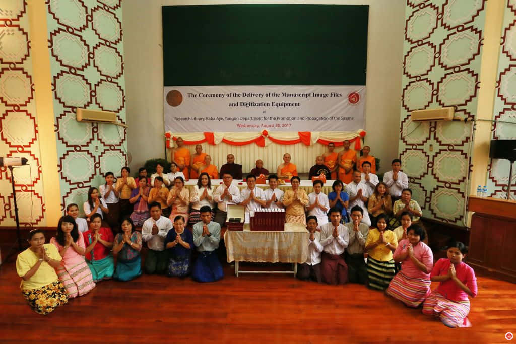 Six years following the official signing of the MOU between DCI and three universities in Myanmar (SPSU of Yangon, SPSU of Mandalay, and ITBMU) in 2011, the digitization of palm-leaf manuscripts archived at the Research Library in Kaba Aye, Yangon, has reached its completion. On this significant occasion, Ven. Thanavuddho, Director of DCI, presented the Director of the Research Library with a copy of the manuscript image files and a complete set of digitization equipment. This equipment included a high-resolution camera, a light meter, a photography shooting table, studio lights, and a laptop equipped with digitization and editing software.