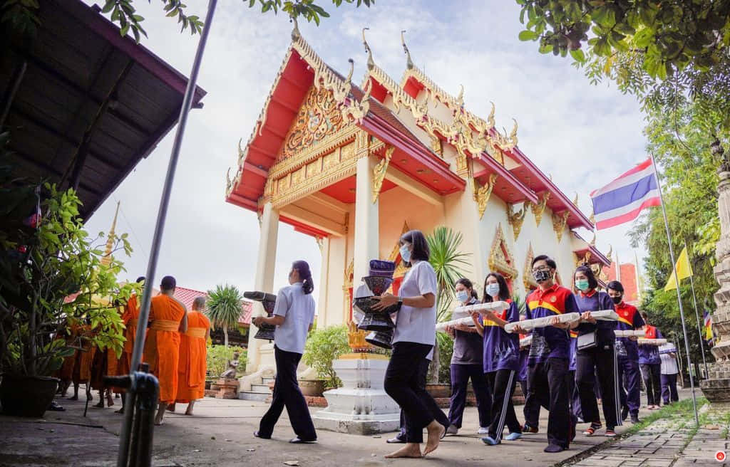 In a solemn ceremony, monks and lay staff from DTP gathered at Sawang Arom Temple to present manuscript wrapping cloths as offerings. The event commenced with the abbot leading a procession of three rounds of circumambulation, followed by the presentation of palm-leaf manuscripts, each adorned with fresh wrapping cloths.