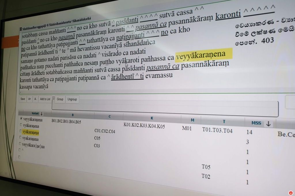 In the production of a critical edition, we employ a specially designated database system known as the 'Indic Text Analysis Program (ITAP).' Within this system, researchers initially edit the text, and a final round of editing is performed by a chief editor. During the editing process, we facilitate weekly discussion groups to address editorial challenges and exchange ideas among the team, particularly regarding variant readings and editorial policies. Researchers also present intriguing or perplexing issues at an annual seminar, during which our prominent advisory members provide guidance and solutions for unresolved matters.